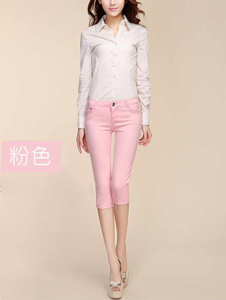 • 糖果休閒七分褲 - 玫紅色