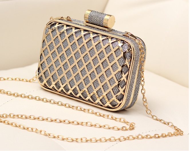 晚宴party流金頂級手拿包 - 金屬菱格-銀色