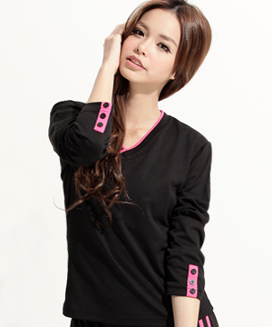 按以下按鈕新增 Girl排汗衣★袖排扣V領-長 (百搭黑+桃紅) 到喜愛產品列表