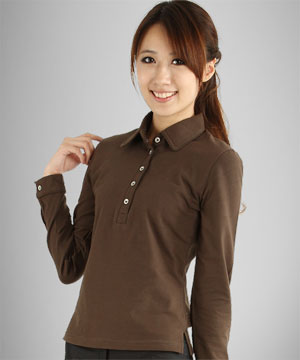 Girl萊卡★精緻排扣POLO-長 (拿鐵咖啡 )