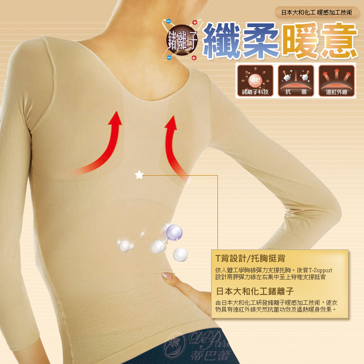 Lolovivi 蒂巴蕾 鍺離子纖柔暖意微塑內衣(七分袖)/羽量級薄蓄熱衣!-裸膚色