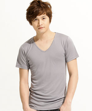 MAN涼感冰紗★V領Tee -短 (舒適灰)